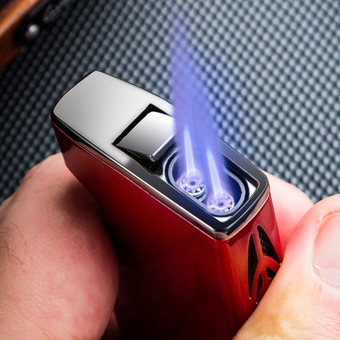 고품질 금속 담배 제트기 점화기 두 배 파란 화염 방풍 여송연 점화기